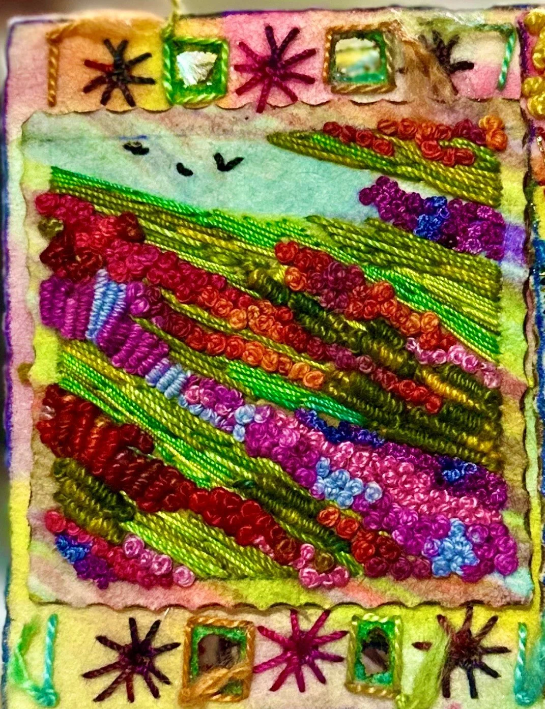 with Melanie MissinThere is nothing quite like hand embroidery. Some people use it to ‘paint’ their canvas or fabric to create the most amazing pictures, whether they are beautiful landscapes, still life or abstract they are always pieces of textile art. Embroidery stitches and techniques are as old as time itself and you will be able to share this ancient craft to keep this artform alive and kicking! You will be making a little book of stitches, learning two or three stitches each week to cover two pages of the book, one will be an abstract page and the other will be a picture or a theme.